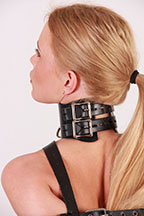 Beautiful babe Melisa Mendini is back and we have some brand new things for her! First of all, a pair of locking ballet shoes. She can not stand up in these so it will make it harder to escape from this room. But what if she just crawls away? We need something sturdy to keep her here. So we invented the biggest and widest leather belt ever! It is not adjustable, one size only, and it is a perfect fit on Melisa. We chain her to the wall using the heaviest padlock we could find. This is a perfect way to secure a slave girl!
